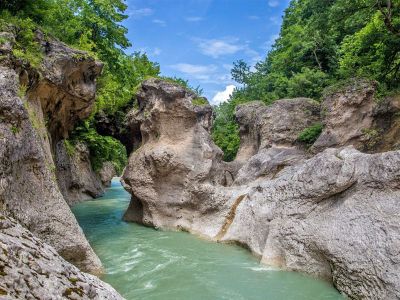В программе: Пешеходная прогулка-экскурсия "Хаджохская теснина" по каньону р. Белая, смотровые площадки на хребте Азиш-тау, Большая Азишская пещера, геотермальный источник, экскурсия "Тайными тропами к водопадам ущелья Руфабго", экскурсия в заповедник "Гузерипль", экскурсия в Свято-Михайловскую Закубанскую Общежительскую пустынь (Свято-Михайловский Афонский мужской монастырь, гора Физиабго, св. источник Целителя Пантелеймона, Древневизантийский пещерный монастырь), смотровая площадка "Копилка" над ущельем Мешоко