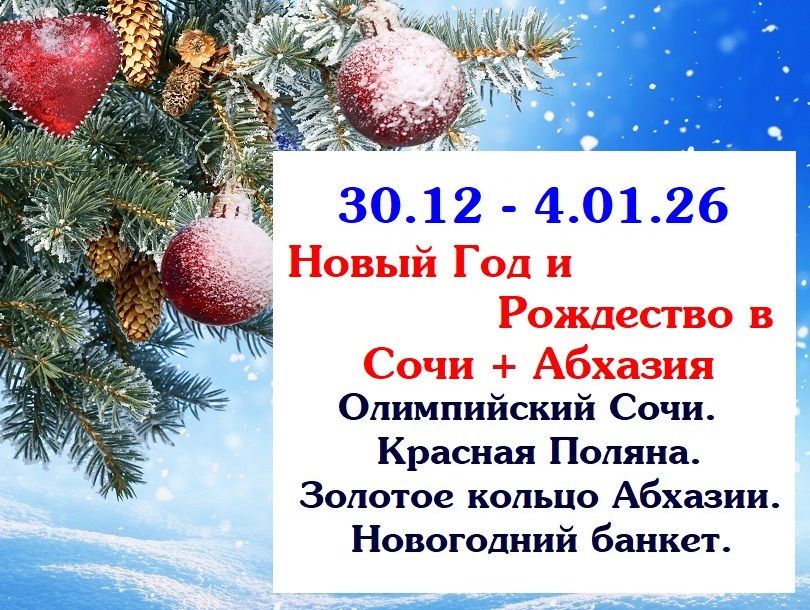 Сочи – обзорная экскурсия, Олимпийские объекты, Ахштырская теснина, Красная Поляна, Олимпийский парк, Новогодний банкет.