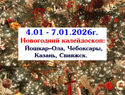 Новогодний калейдоскоп: Йошкар–Ола, Чебоксары, Казань, Свияжск. Отправляемся в новогоднее путешествие по трём столицам, нас ждут в праздничном убранстве красавицы Йошкар–Ола, Чебоксары и Казань. Побываем мы и на острове-граде Свияжске!