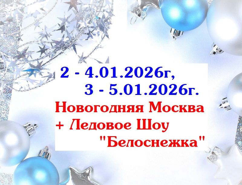 В дни новогодних каникул мы приглашаем взрослых и детей на ледовое шоу "Белоснежка" от Евгения Плющенко! Едем за яркими эмоциями и приключениями к любимым сказочным персонажам! В программе: обзорная экскурсия по городу "Новогодний калейдоскоп", экскурсия по Красной и Манежной площадям, Александровскому Саду, прогулка по парку "Зарядье", посещение новогоднего шоу на льду "Белоснежка"
