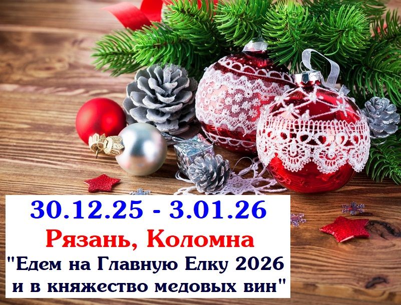 Приглашаем на Главную Ёлку России 2026, в Рязань, и в княжество медовых вин, в красавицу Коломну! Комфортный тур с мастер- классами, дегустациями, квестами, *Новогодним банкетом.