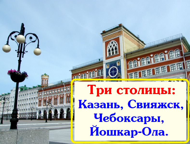 Отправляемся в путешествие по трём столицам, нас ждут в красавицы Йошкар–Ола, Чебоксары и Казань. Побываем мы и на острове-граде Свияжске! вы познакомитесь с этими красивыми и необычными городами, с национальной культурой и главными достопримечательностями.